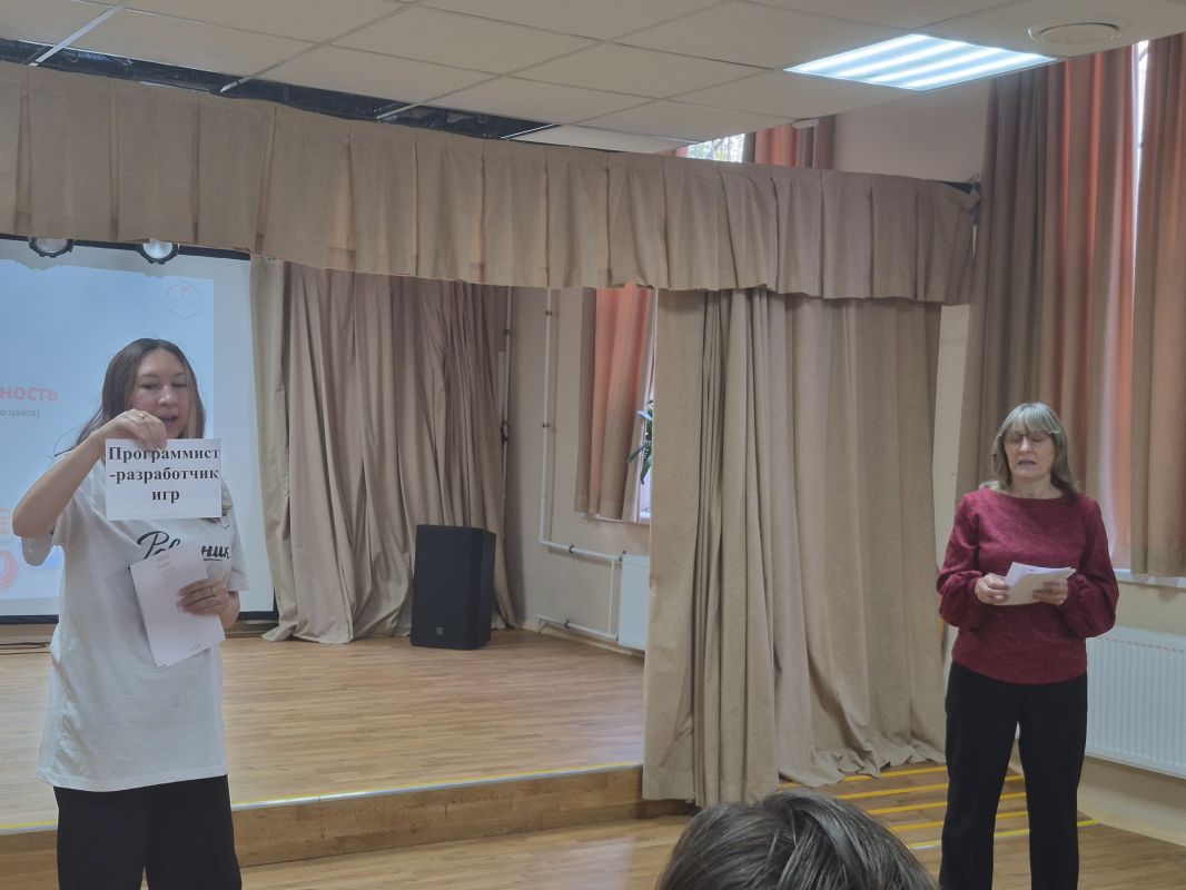 С ребятами поиграли в интересную игру: необходимо было назвать свое имя и профессию, которая начинается с первой буквы имени, а также вспомнить, что же означает это слово. Помимо этого, молодым людям загадывали слова, и необходимо было определить, профессия это, специальность или должность. Ребята отлично справились с этими веселыми играми.