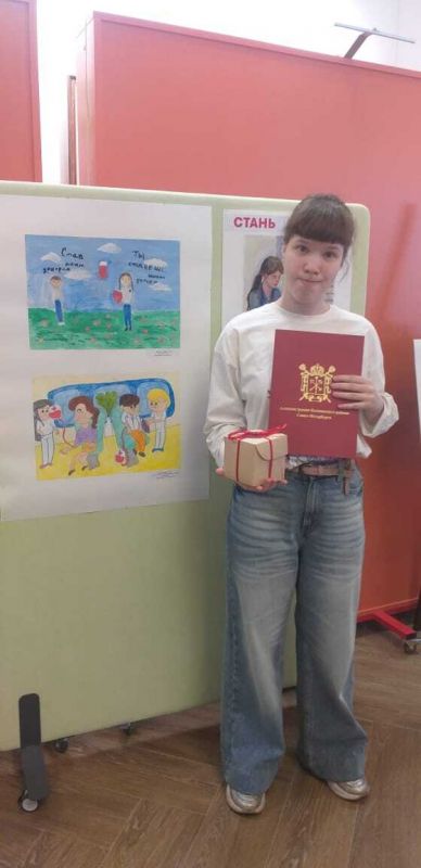 Церемония награждения конкурса "Подари жизнь"![]() 18 апреля 2025 года по адресу: г. Колпино, ул. Тверская, д.37, СПб ГБУ ДО "Детской художественной школы №3" состоялось торжественное награждение участников районного конкурса художественного творчества «Подари жизнь!», приуроченного к Национальному дню донора крови. Церемонию награждения провели заместитель главы администрации Колпинского района Нилова С.В. и Почетный донор России и Санкт-Петербурга, специалист по пропаганде донорства крови Городской станции переливания крови Санкт-Петербурга Давыдов С.В. Конкурс проводился в двух номинациях: «Плакат» – лаконичные и выразительные работы, привлекающие внимание к теме донорства; «Композиция станковая» – сюжетные рисунки, раскрывающие важность донорской помощи. В творческом состязании приняли участие дети и подростки 12–17 лет. На конкурс было представлено множество ярких и трогательных работ, каждая по-своему раскрывает важность донорства и несёт искренний призыв к добру. Центр социальной реабилитации инвалидов и детей-инвалидов Колпинского района «Поддержка» представляла наша талантливая художница Синова София (победительница конкурса на разработку логотипа Донорского движения Колпинского района – 2025) под руководством специалиста по комплексной реабилитации Айгумовой Дианы Казимагомедовны. Мы гордимся нашим юным талантом, ее наставником и их потрясающими работами, которые не только продемонстрировали художественные способности, но и помогли привлечь внимание к важной теме донорства крови.