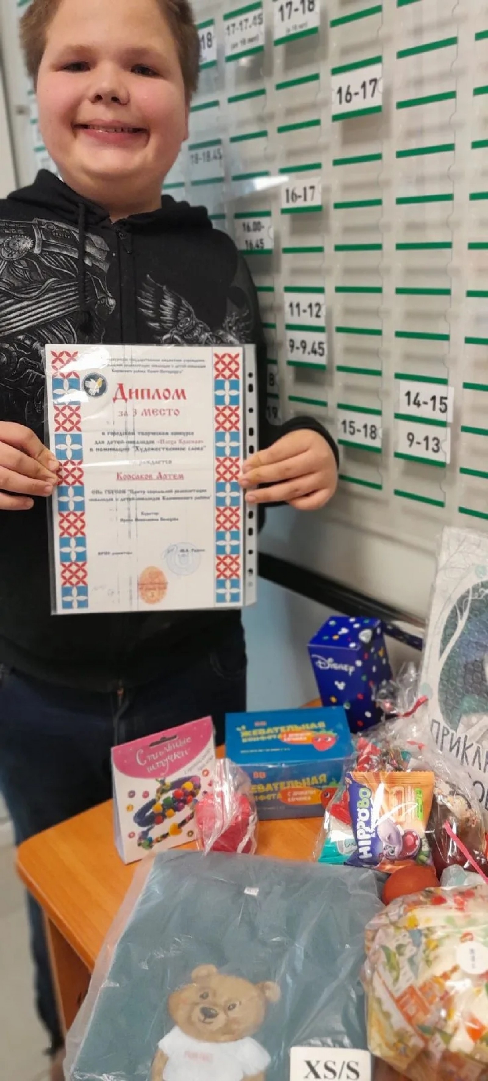 Награждение победителей городского творческого конкурса для детей-инвалидов «Пасха Красная»![]() 15 апреля в СПб ГБУ «Центр социальной реабилитации инвалидов и детей‑инвалидов Кировского района» состоялось торжественное награждение победителей городского творческого конкурса для детей-инвалидов «Пасха Красная». Наш Центр на конкурсе представлял талантливый и целеустремлённый юный артист- Корсаков Артём. Под руководством специалиста по социальной реабилитации Белеховой Ирины Николаевны он подготовил и блестяще исполнил стихотворение Сергея Александровича Есенина «Пасхальный благовест». По итогам конкурса в номинации «Художественное слово» Артём удостоен почётного третьего места!